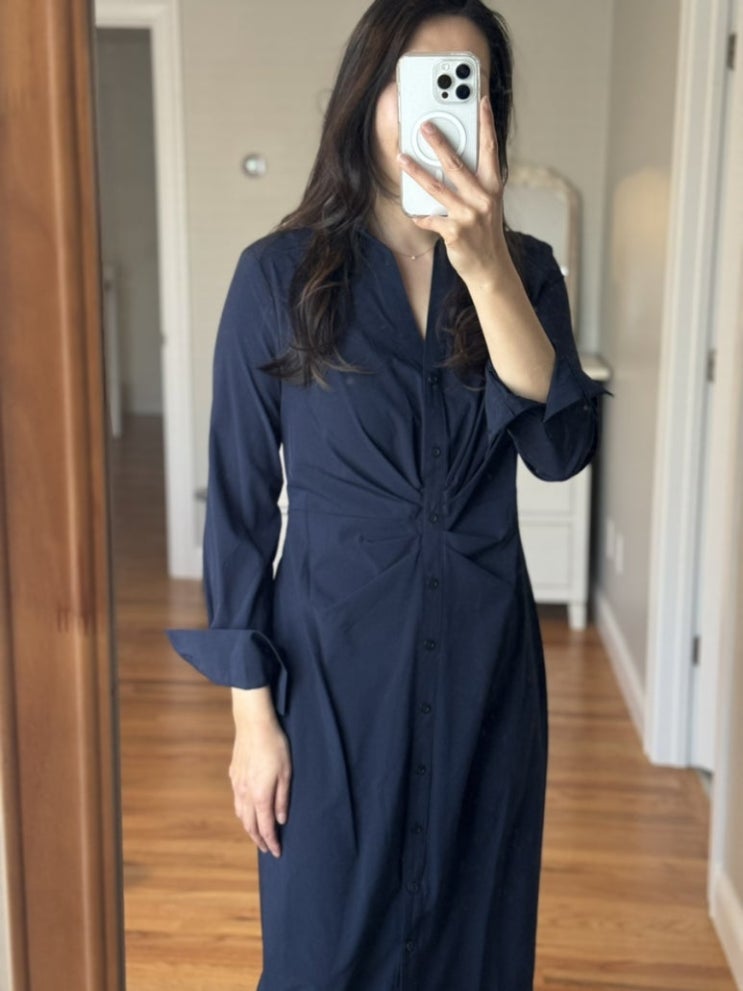 [추가세일/2컬러] DKNY 셔링 미디 원피스