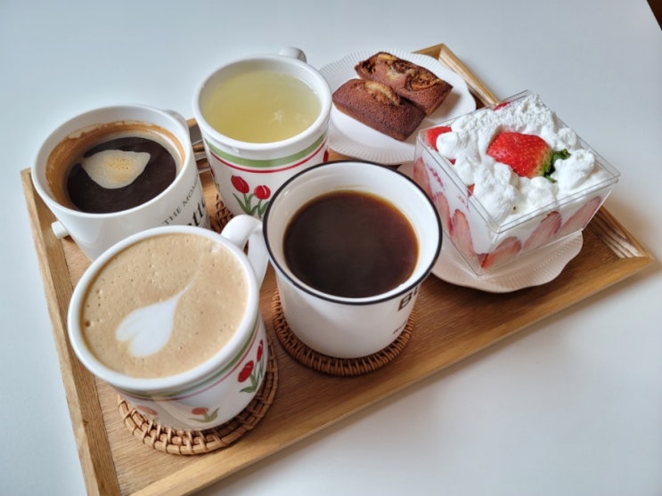오늘 운동끝나고 친구들이랑 쭈꾸미먹고 홍코가서 커피에 딸기케이크 휘낭시에먹음 커피도 맛나고 케이크도...
