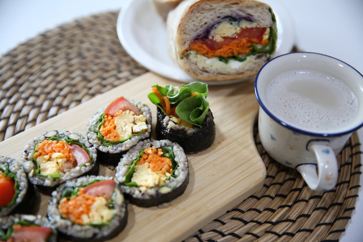 건강식 샌드위치 아침루틴 당근 토마토 주스/건강식 야채 토마토 김밥/통밀 콩국수 요리