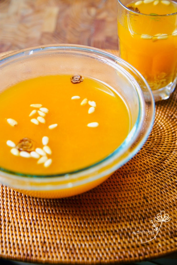 단호박 식혜 만들기 따뜻하게 즐김 갑자기 추워져 보양식 되어버림 때깔 좋고 면역에도 좋은 단호박 식혜 무설탕 식혜 만들기