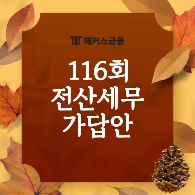 안녕하세요 여러분! 오는 10월 6일 일요일에 제 116회차 전산세무 1급과 전산세무 2급 시험이 있는데요. 시...