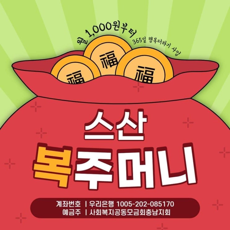 복 (福) 들어갑니다~ #365일_행복더하기_뱅크사업 #스산복주머니 사업에 참여하세요 서산시는 정부지원에서...