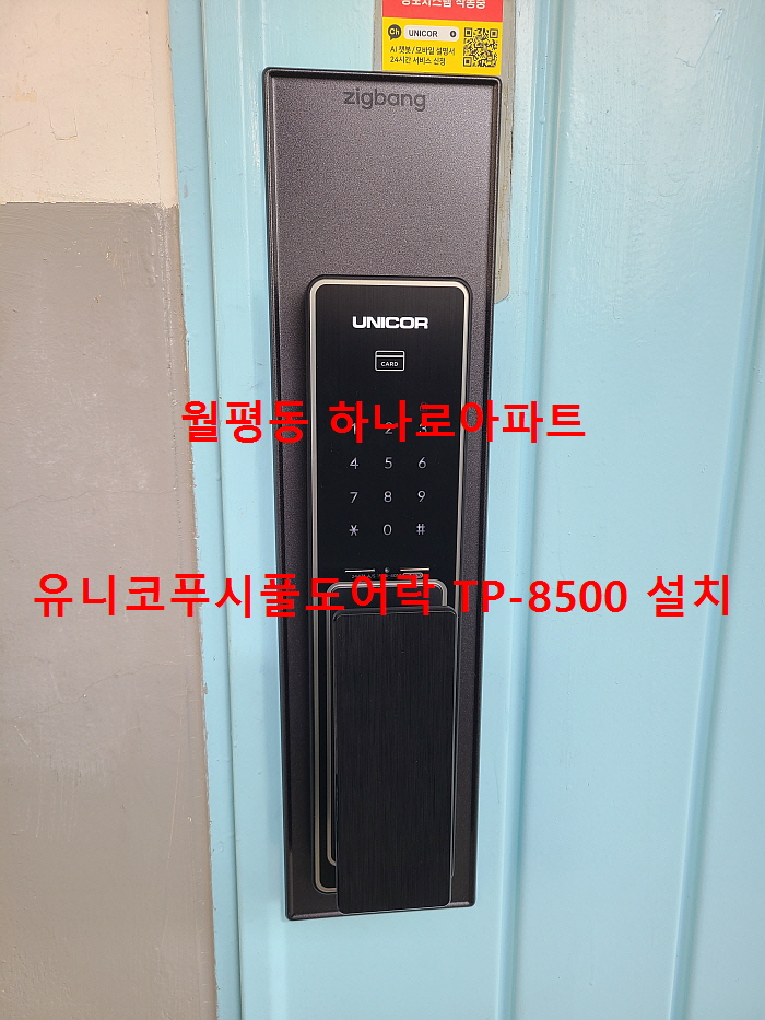 [대전도어락/대전열쇠] 월평동 하나로아파트에서 유니코 푸시풀도어락 TP-8500 설치