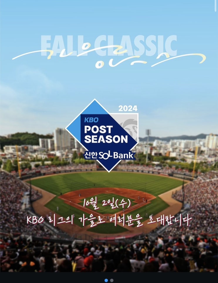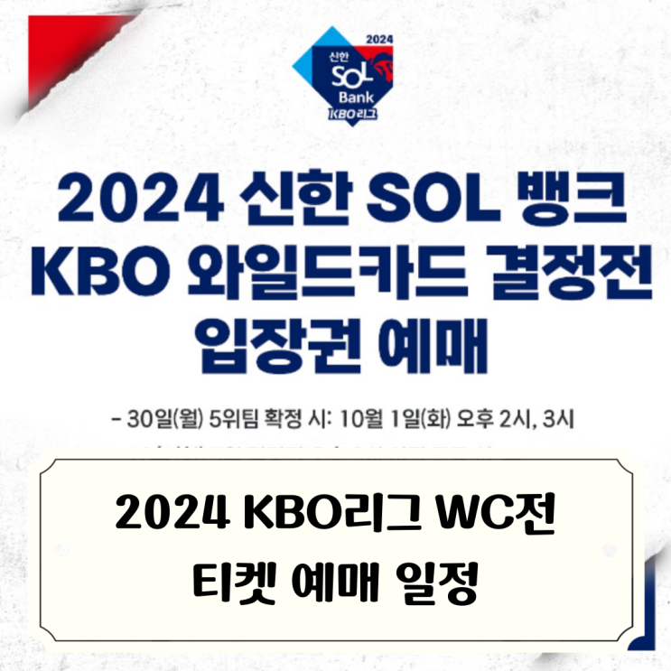2024 신한 SOL뱅크 KBO 와일드카드 결정전 입장권 예매 안내 10월 2일(수) 오후 6시 30분부터 잠실에...