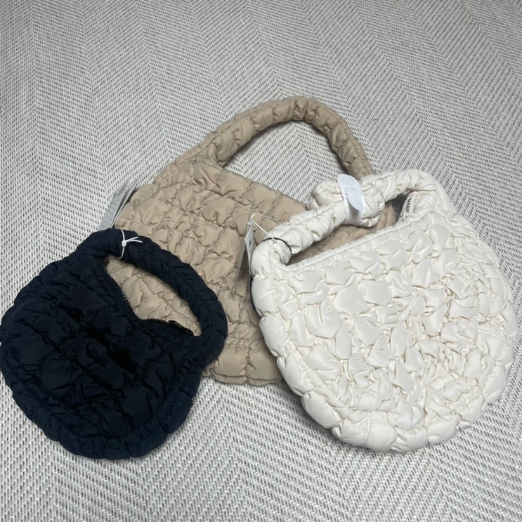 COS 코스 구름 퀼티드 미니백 베이지,아이보리&마이크로백 블랙 (feat. 카키 미니백)