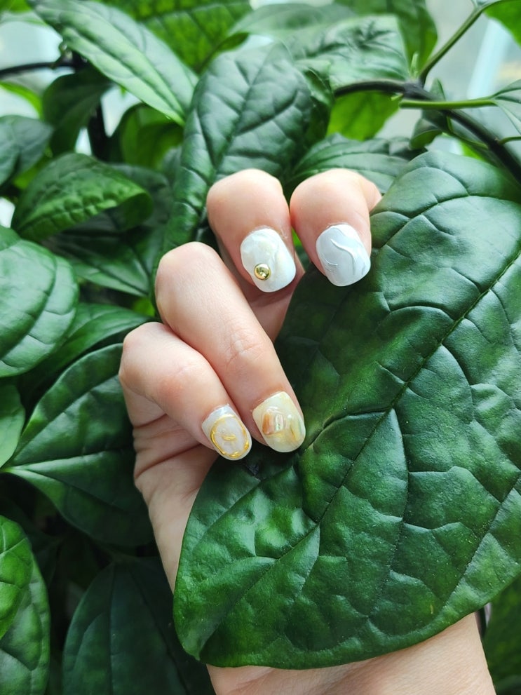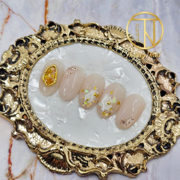 은은한 시럽컬러와 골드 자개 뉘앙스아트가 고급스러운 셀프 맞춤 수제네일팁
