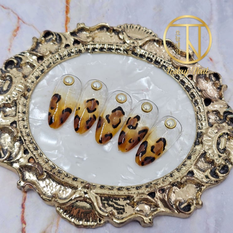 섹시한 호피무늬 그라데이션 가을 포인트네일 셀프 맞춤 수제네일팁