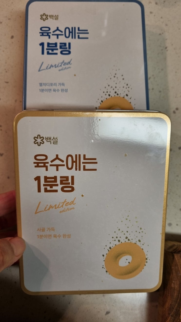 추석선물세트로 백설선물박스를 받았는데 육수링 두 박스가 들어있었다 ?된장찌개재료(3~4인분) .물 550...