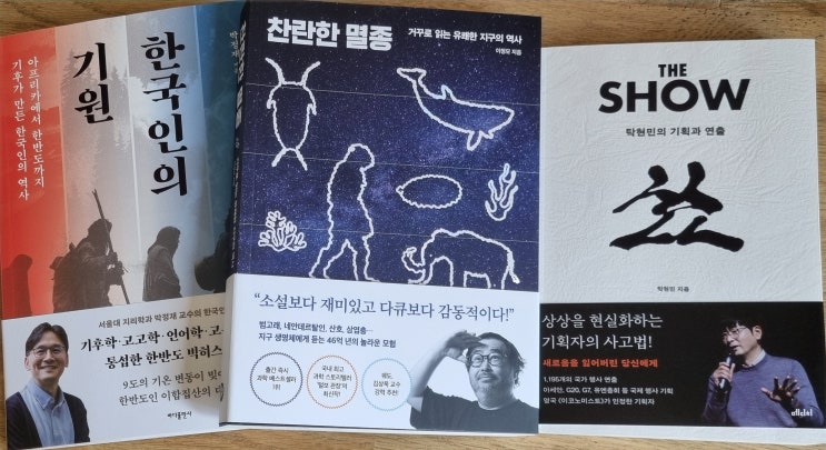 세 권의 책 : 한국인의 기원, 찬란한 멸종, 더 쑈
