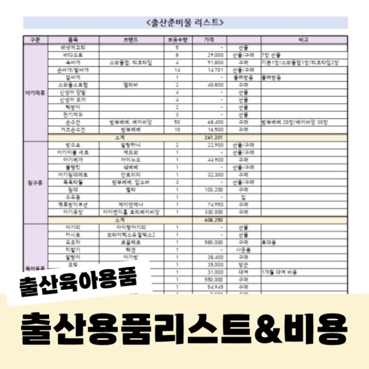 오늘은 제가 준비했던 출산용품 리스트와 출산육아용품 준비에 지출한 비용 총정리를 해보려고 해요 저의 ...