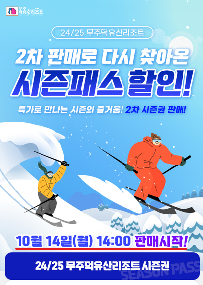 여러분, 반가워요! 드디어 무주덕유산리조트 24/25 스키 시즌권 2차 판매가 시작되었습니다. 이번 판매는 1...