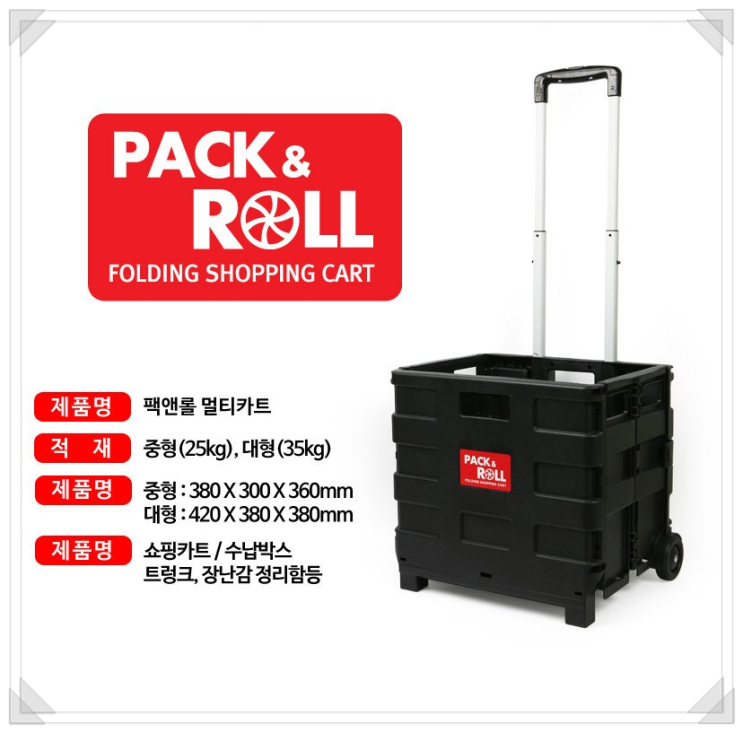 팩앤롤 접이식 다용도 쇼핑카트(블랙 중형 + 뚜껑)사용법
