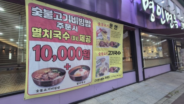 수완지구 가성비 숯불고기 냉면 고기국수 명인면옥