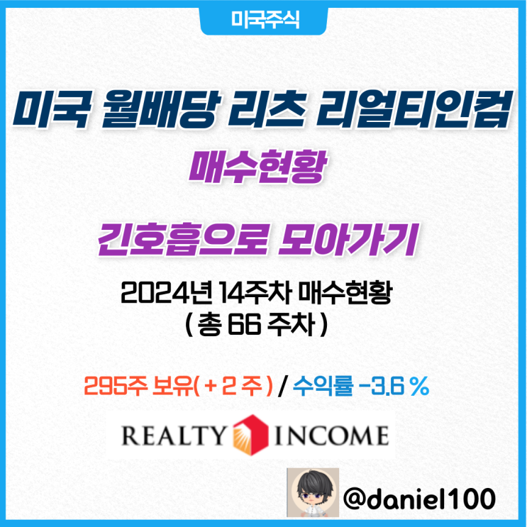 미국 월배당 리츠 리얼티인컴 ETF 매수 현황 2024년 14주 차 4월 (ft. 긴호흡으로 모아가기) 미국의 대...