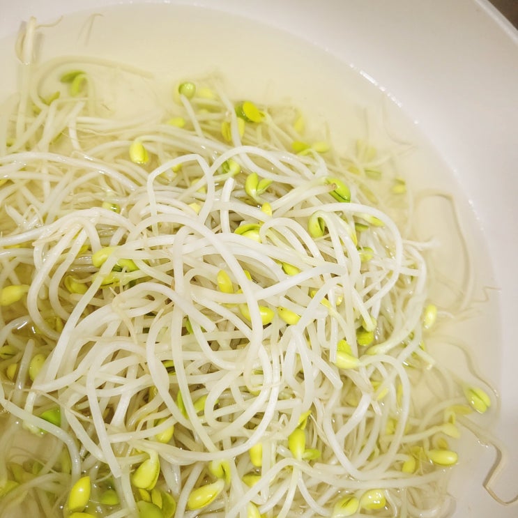 어머님이 반찬과 함께 콩나물을 싸주셨는데 집에 와서 보니 콩나물이 어딘가 다른 느낌! 노란색이어야 할 ...