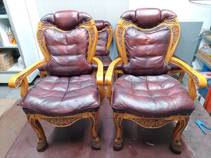 성북출장가구수리 돈암동 식탁의자 쿠션 방석 가죽교체 사례 오래된 식탁의자, 방석이 푹 꺼져 허리가 아프...