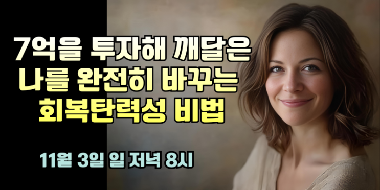 7억을 투자해 깨달은,나를 완전히 바꾸는 회복탄력성 비법 11월3일 (일) 저녁8시