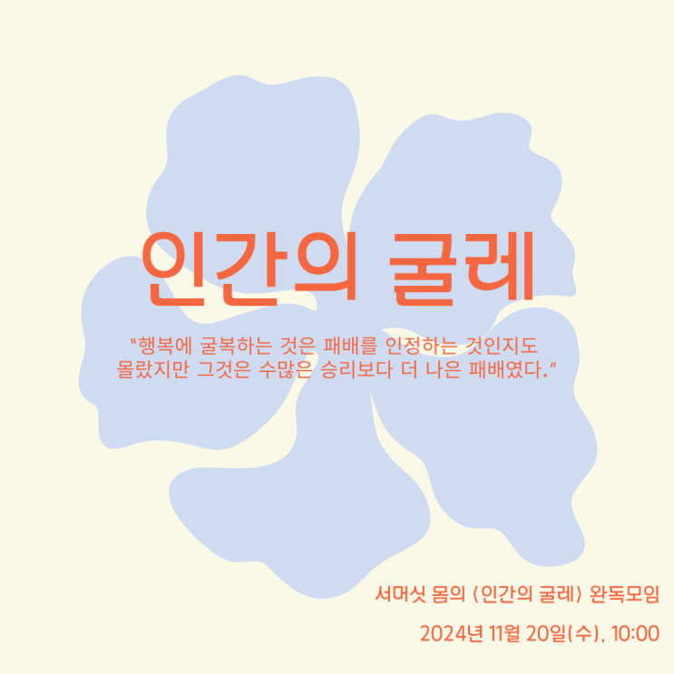 서머싯 몸의 <인간의 굴레 1, 2>를 완독하는 고전 모임으로 여러분을 초대합니다 :) *일시: 11월 20...
