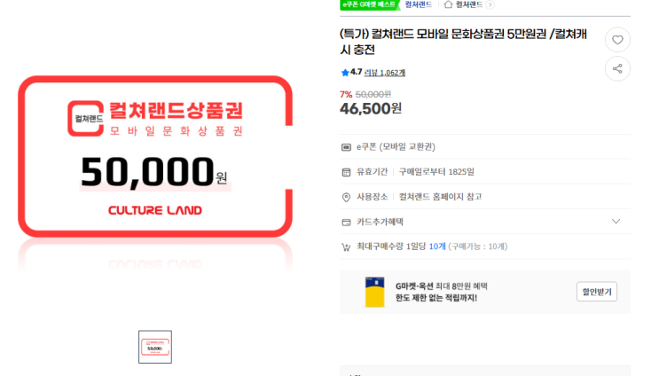https://item.gmarket.co.kr/Item?goodsCode=4154525168 #컬쳐랜드 #모바일상품권 #모바일문화상품...