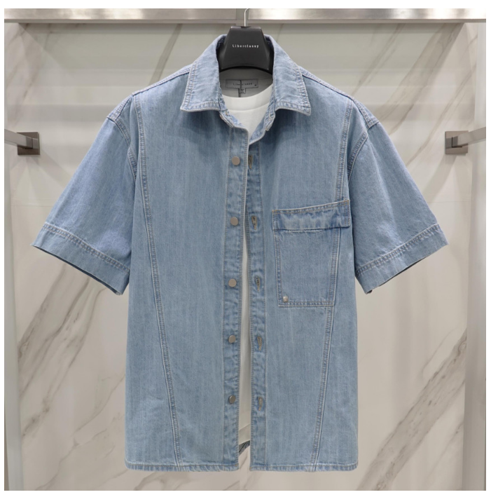 리버클래시 셔츠: 차은우 Pick 라이트 블루 오버핏 데님 반팔 셔츠