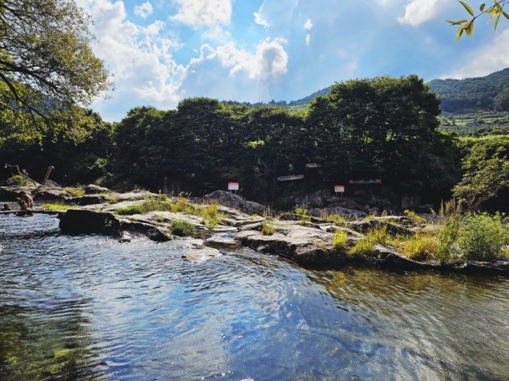 휴게소 들러서 맥반석 오징어 냠냠 3년 전에 갔던 계곡으로 또 다녀왔다. 닭볶음탕도 냠냠 아가 다슬기도 ...