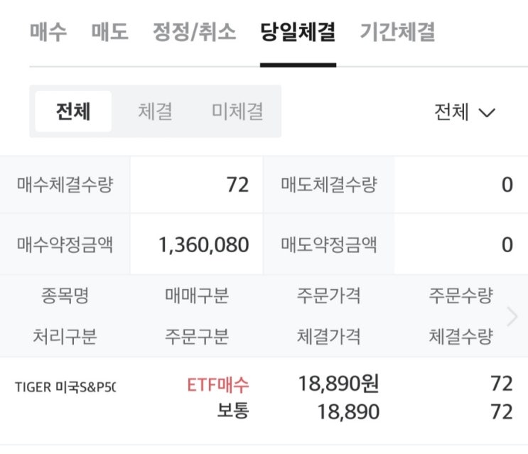 연금저축계좌에서 TIGER 미국S&P500 72주를 매수했다. 연금저축 계좌 2,051주 / IRP 계좌 33...