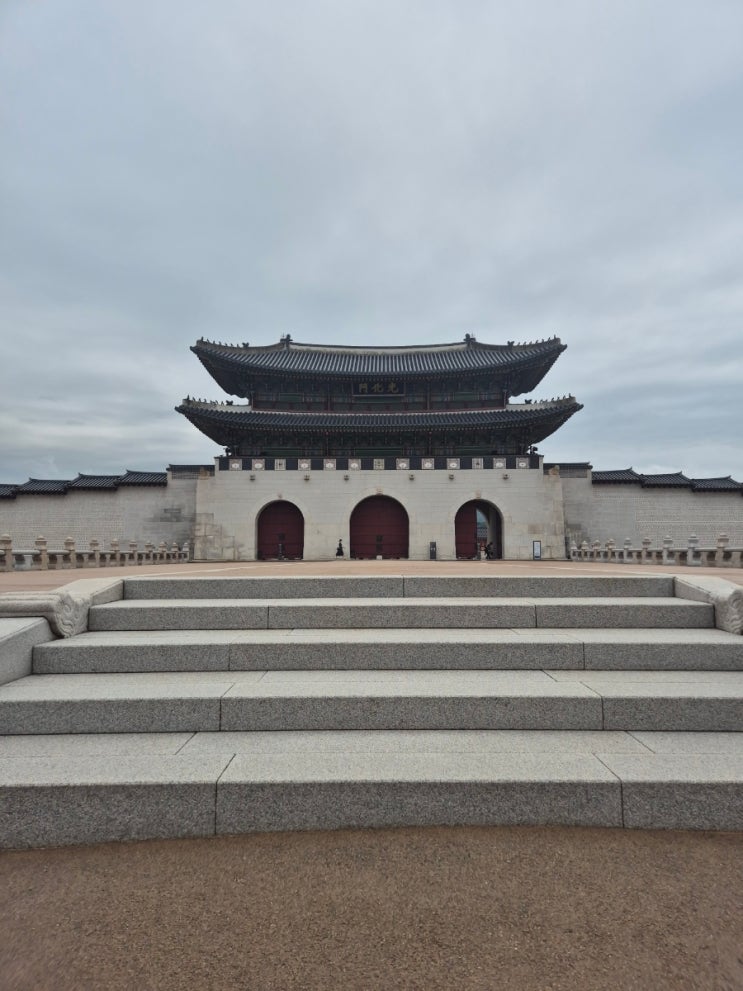 광화문광장 정류장 하차 광장에서 바라본 광화문 전경 구름낀 하늘과 경복궁 정문 광화문이 잘 어울린다 광...