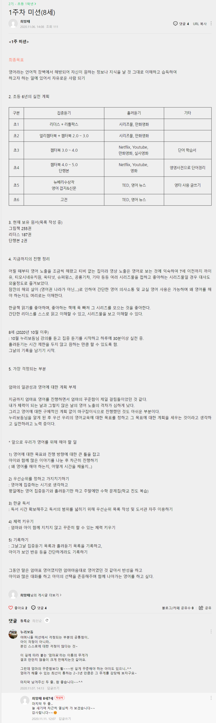 23년 초4 달콤이의 1월부터 11월까지의 기록 및 앞으로의 계획들. 같이 모임하는 동기분들과 6개월 마다 줌...