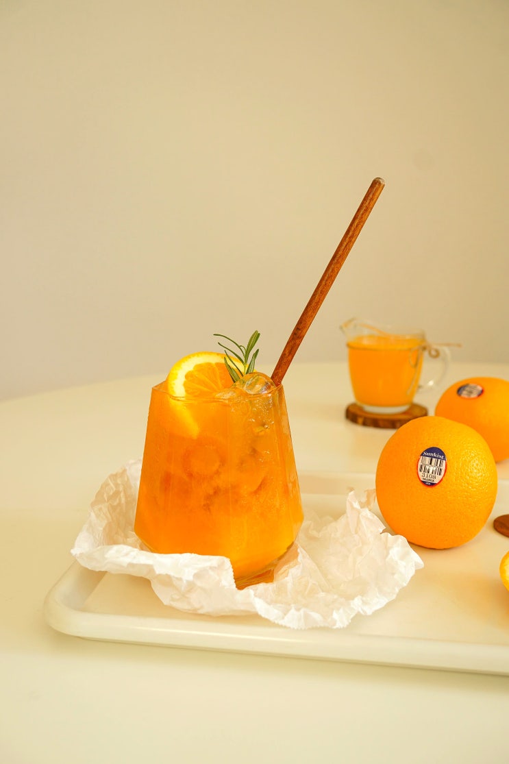 썬키스트 발렌시아 오렌지로 오렌지 얼그레이 아이스티 만들기