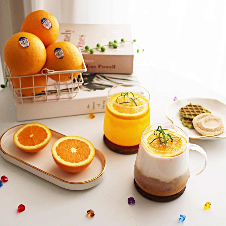 아침식사 대용 오렌지라떼 만들기 홈카페 간식 레시피 썬키스트 발렌시아 오렌지 주스