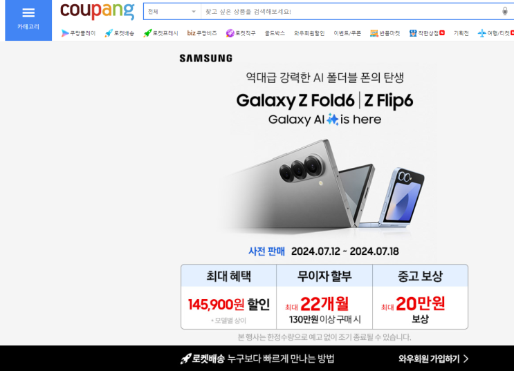갤럭시 Z 폴드6, 플립6 쿠팡 사전예약 방법 더욱 슬림해지고 가벼워진 갤럭시 Z 폴드6와 플립6의 사전예...