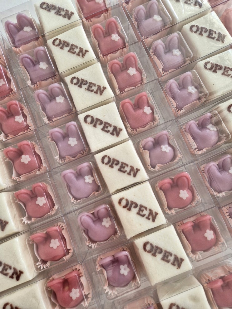 수학학원 개업떡으로 준비해드린 백설기와 토끼바람떡2개로 구성된 3구 #개업떡입니다. 보라,핑크, 토끼바...