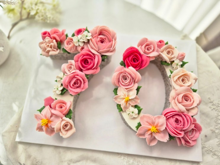 . 칠순케이크로 70 숫자떡케이크 준비해드렸습니다. 중간중간 빈공간 있게 꽃올려달라고 하셨어요 기본은 ...