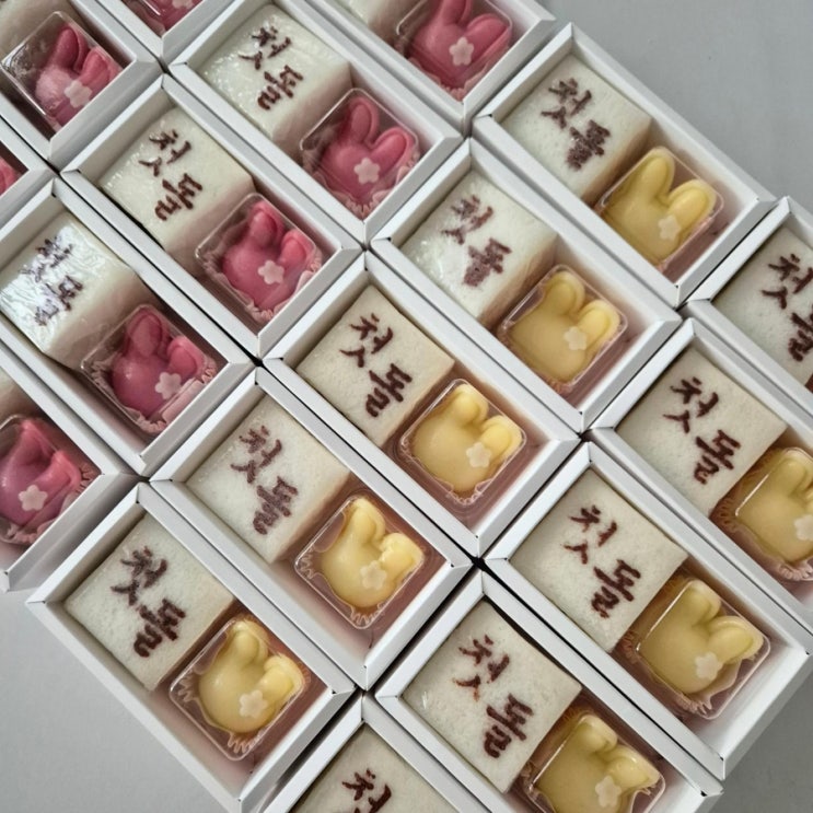 귀여운 토끼답례떡 상차림떡세트 작년 백일때 찾아주셨던 고객님께서 아기 돌때 다시 연락을 주셨어요. 이...