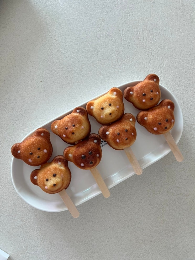 밀가루가 아닌 쌀가루로 만든 쌀휘낭시에에요! 애기들이 좋아할만 곰모양 틀로 구워낸 곰낭시에에요 ? ...