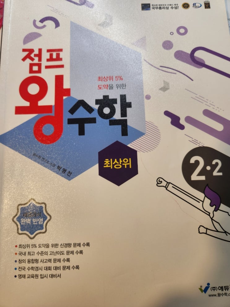 여름방학때 2학년 2학기를 쓱 예습하고자 점프 왕수학 최상위를 구입했다. (에듀왕에서 나오는 왕수학 시리...