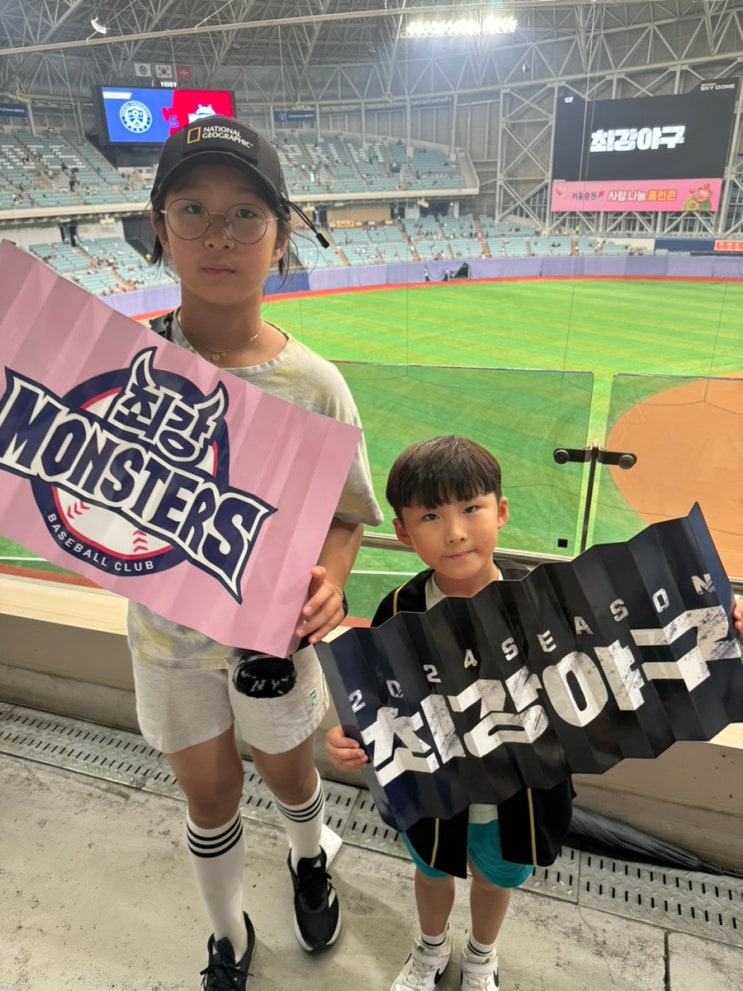 강릉에서 서울(고척스카이돔)까지 최강야구 연세대전 초등가족 첫 직관 후기(주차장이용, 음식 배달 , 내야석 320구역 시야 등)