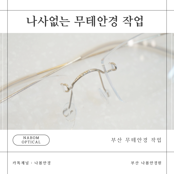 안녕하세요 부산 나봄안경원입니다. 프레임이 없는 안경을 무테안경이라고 합니다. (Rimless glasses) 프...