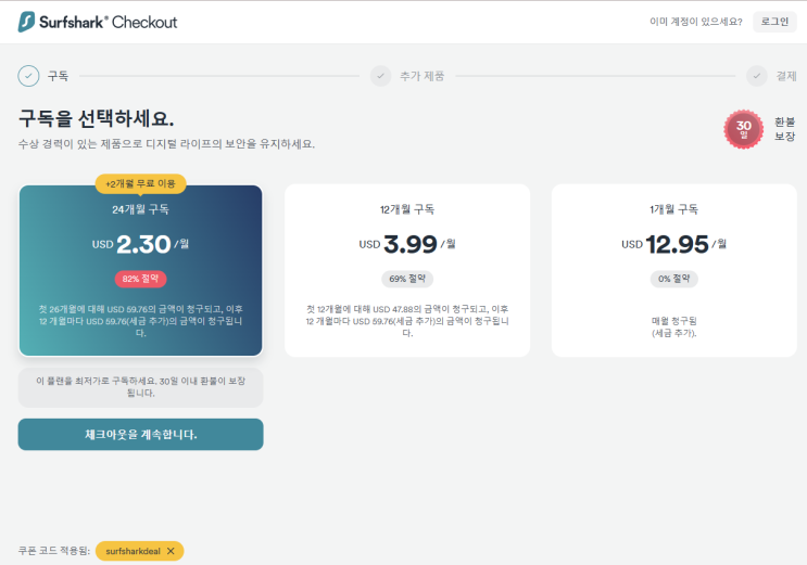 내돈내산 surfshark vpn 24+3개월(미국에서 이용하기) +2023.4.30기준 웨이브 안됨