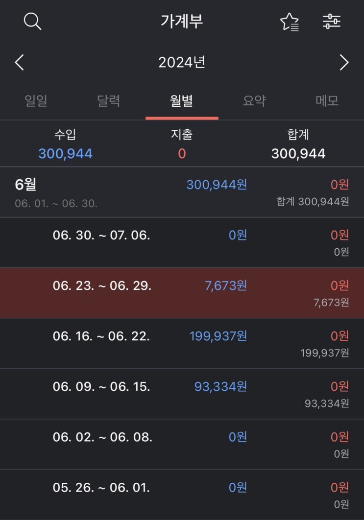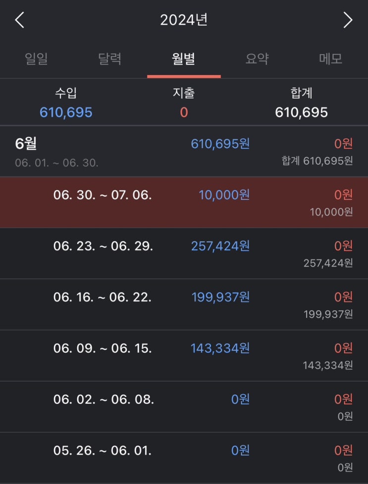 6월 넷째주 부수입 결산과 투자 현황입니다
