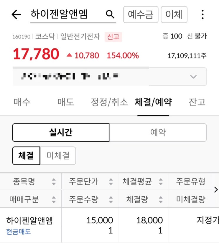 한국투자증권에서 균등배정 받은 1주 하이젠알앤엠을 시초가에 매도하였습니다 요즘 공모주 흐름이 시초가...