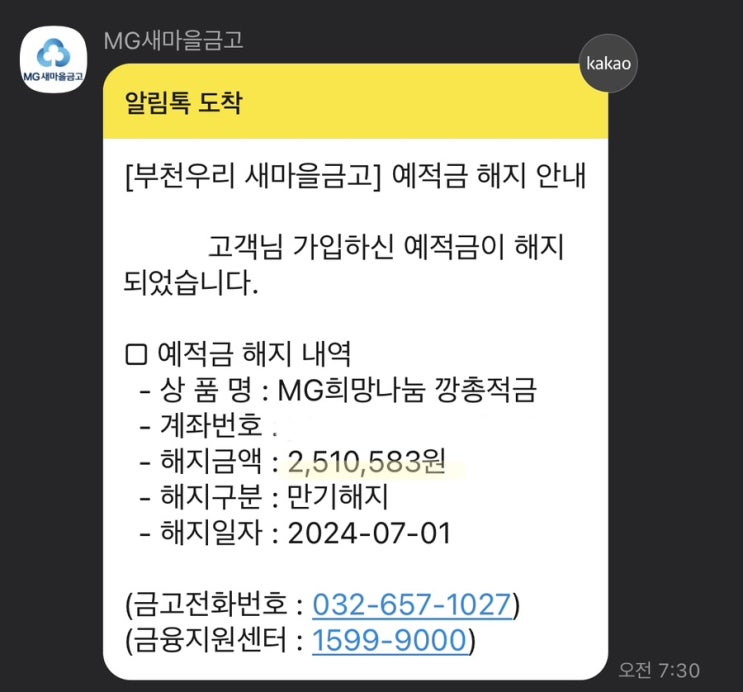 새마을금고 깡총적금, 아이의 첫 적금이 만기가 되었습니다