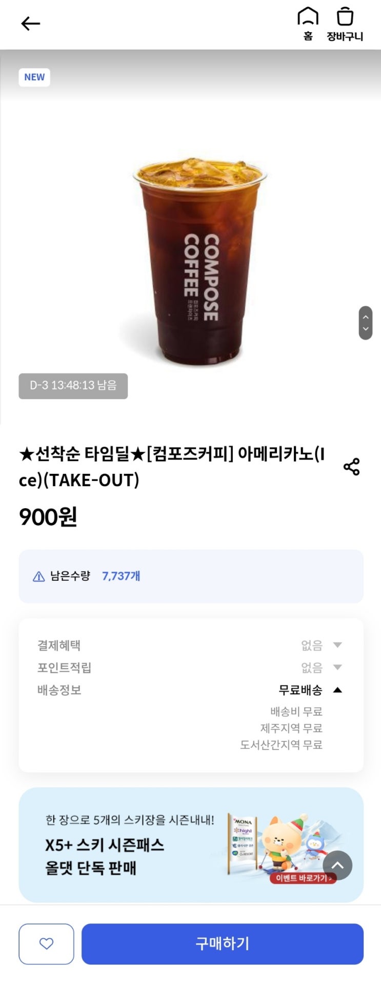 [신한올댓] 컴포즈 커피 900원 선착순