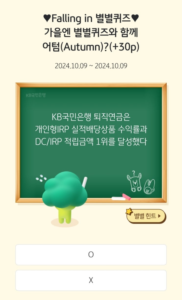 KB스타뱅킹별별퀴즈 10월9일수요일정답(30Wallet포인트)
