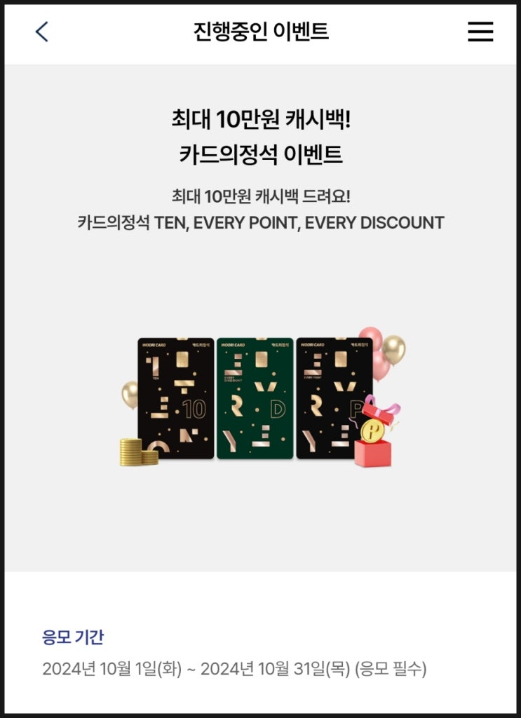 우리카드 신규발급 이벤트 10만원 현금 캐시백 카드테크(ft.신용카드 풍차돌리기 시작)