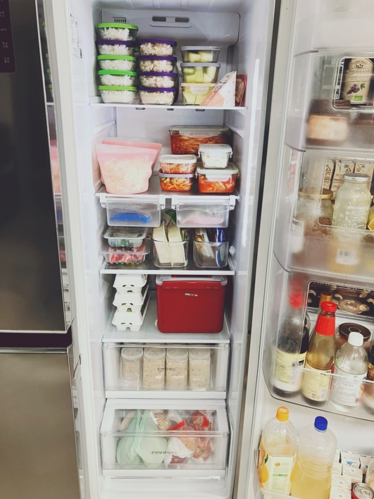 실리콘지퍼백 써보니 좋아서 그대로 재구매한거 도착. 1L짜리 세개. 그리고 새벽배송 박스 와서 정리했다....