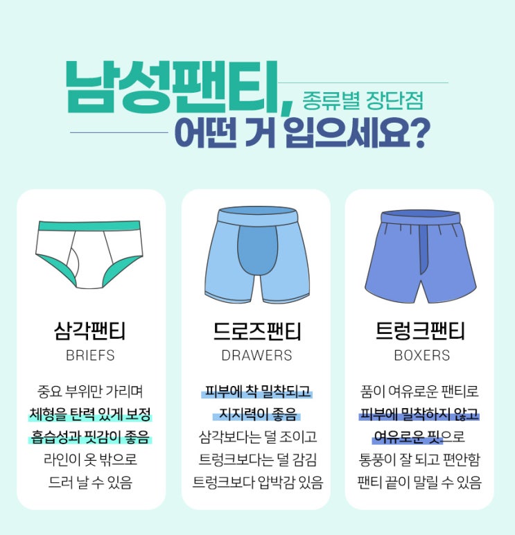 남자 트렁크 팬티와 드로즈의 장단점