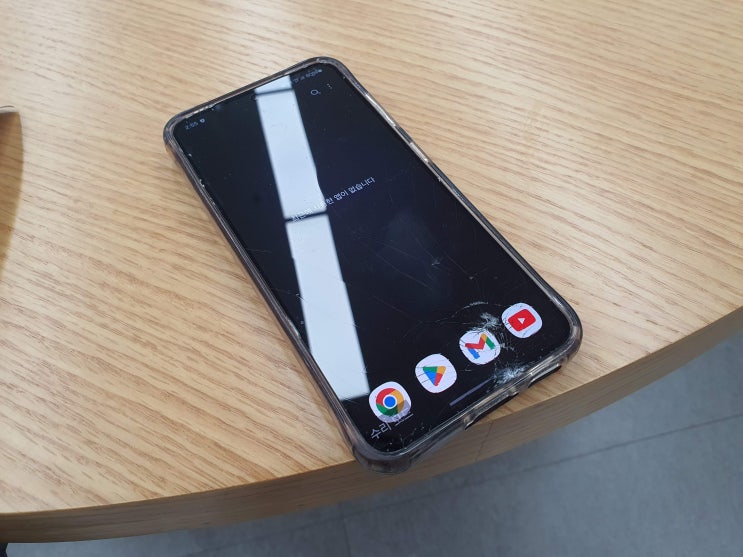 갤럭시 S23.. 깨먹었습니다.. 오토바이에서 떨어졌네요.. ㅋㅋ; 젤리케이스에 필름은 없었습니다. 필름이 ...
