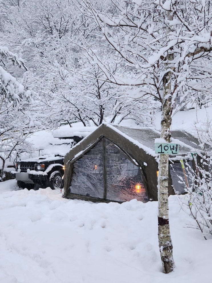 강릉 주문진 산속 계곡이 있는 정원펜션캠핑장에서 설중캠핑 즐겨요!