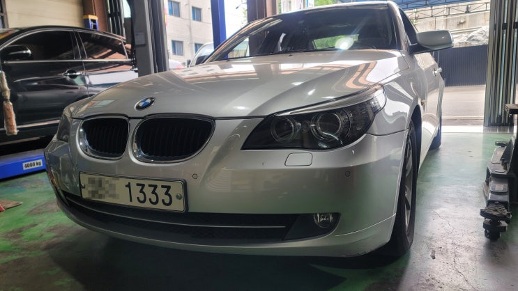 비엠 E60 에어컨 콤프레샤, 엔진오일, 밧데리 교환 차량입니다